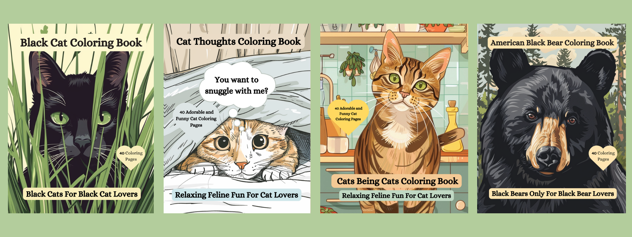 Take a break from the hustle and bustle of everyday life and unwind with our collection of Cat Coloring Books with 40 intricately designed pages. Check out our Wildlife Coloring Books featuring American Black Bear, Red Fox, Rabbits and Squirrels too!